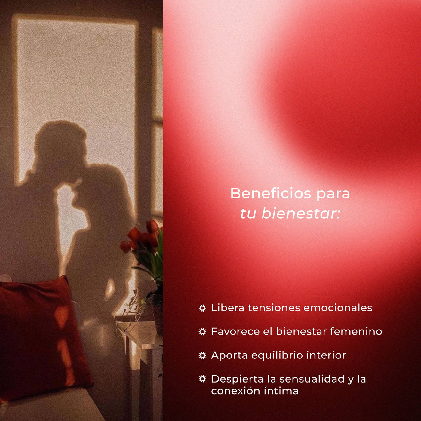 Aroma Sensual y Atractivo: La combinación de ylang ylang y vainilla crea un aroma cálido y exótico que despierta los sentidos, promoviendo una atmósfera de sensualidad y atracción.