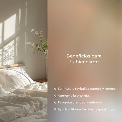 Alivio Respiratorio: Esta mezcla es ideal para despejar las vías respiratorias y mejorar la respiración, ayudando a aliviar la congestión y creando una sensación de frescura.