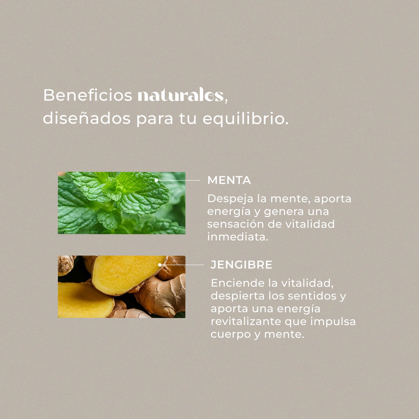 Energía y Vitalidad: La combinación de jengibre y menta crea un aroma refrescante y vigorizante que ayuda a revitalizar los sentidos y mejorar el estado de ánimo.
