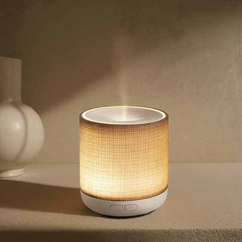 4.Coloca la cubierta superior, presiona el botón power, al escuchar un click el difusor se encenderá y comenzará a vaporizar. Cuando el difusor esté en funcionamiento y detecte escasez de agua, se apagará automáticamente previniendo quemaduras y fallas en el difusor y sus partes internas.